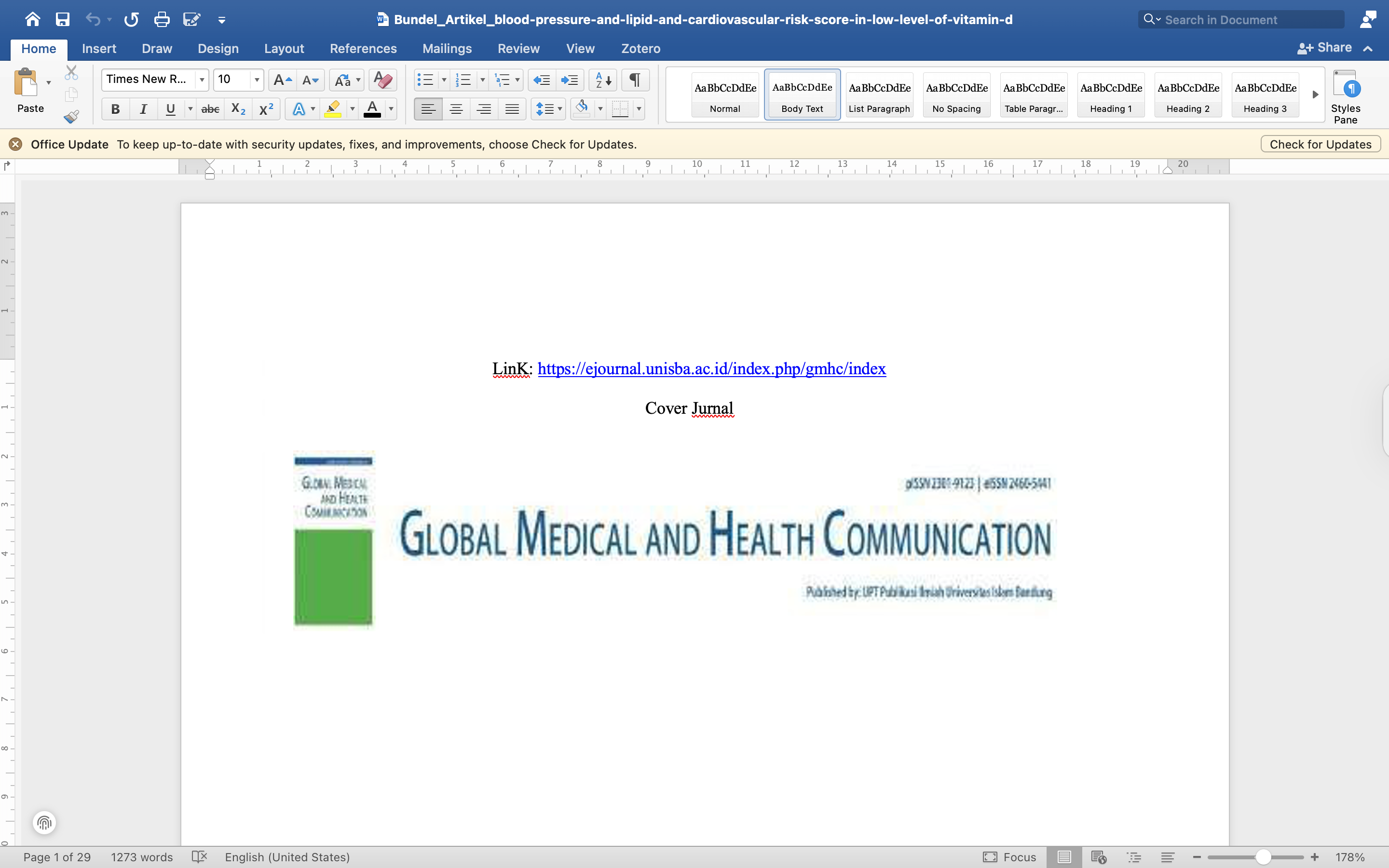 Cover, Dewan Redaksi, Daftar Isi, Artikel,Surat Korespondensi, Turnitin Artikel 25-hydroxy vitamin D concentrations negatively correlated with HbA1c i ...