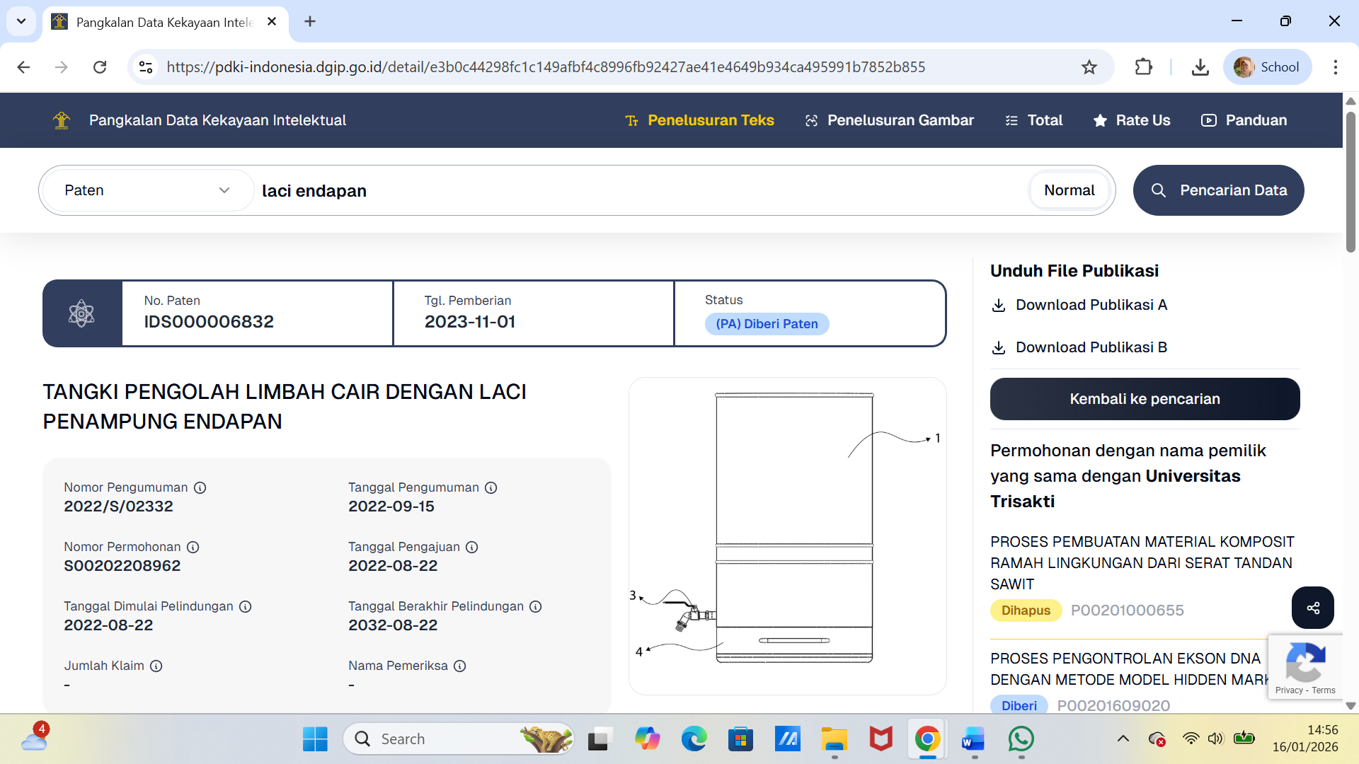 Paten METODE PEMBUATAN KOAGULAN KITOSAN DARI KULIT UDANG WINDU UNTUK MENURUNKAN KADAR WARNA DALAM AIR LIMBAH lengkap dengan halaman muka pada web PDKI ...