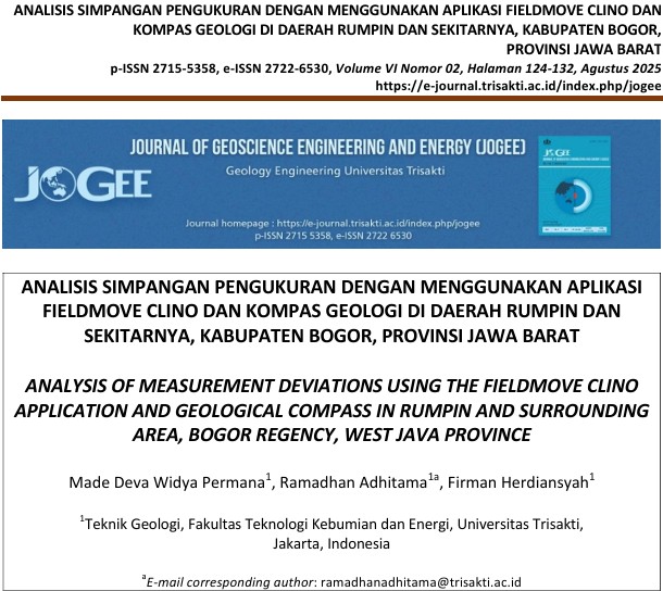 ANALISIS SIMPANGAN PENGUKURAN DENGAN MENGGUNAKAN APLIKASI FIELDMOVE CLINO DAN KOMPAS GEOLOGI DI DAERAH RUMPIN DAN SEKITARNYA, KABUPATEN BOGOR, PROVINSI JAWA BARAT