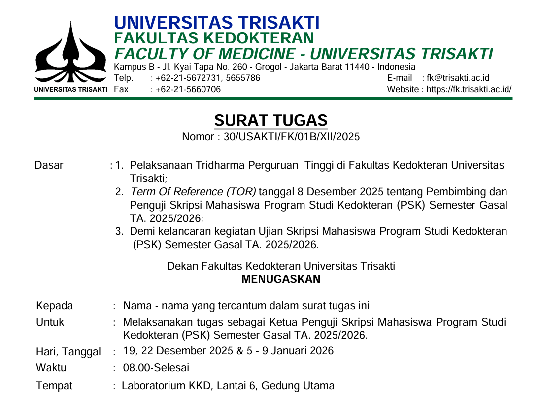 Surat tugas ketua Penguji Skripsi Gasal 25/26