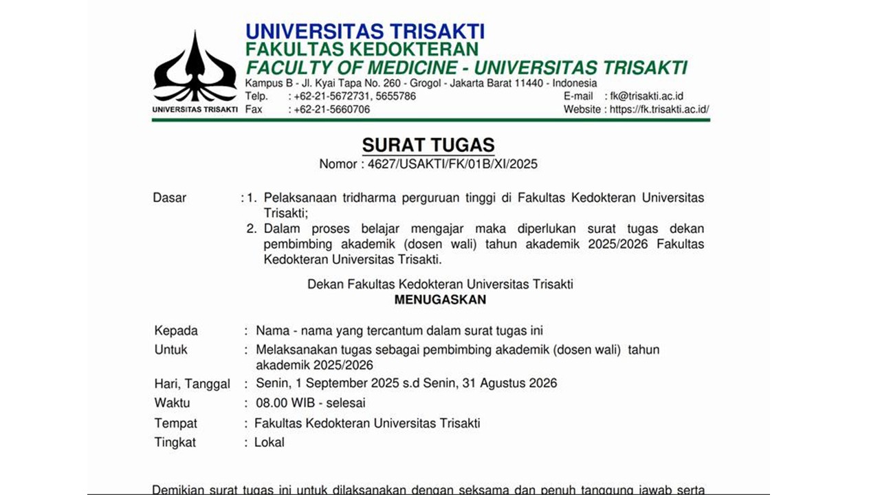 Surat Tugas Dosen Wali_Gasal 2025/2026
