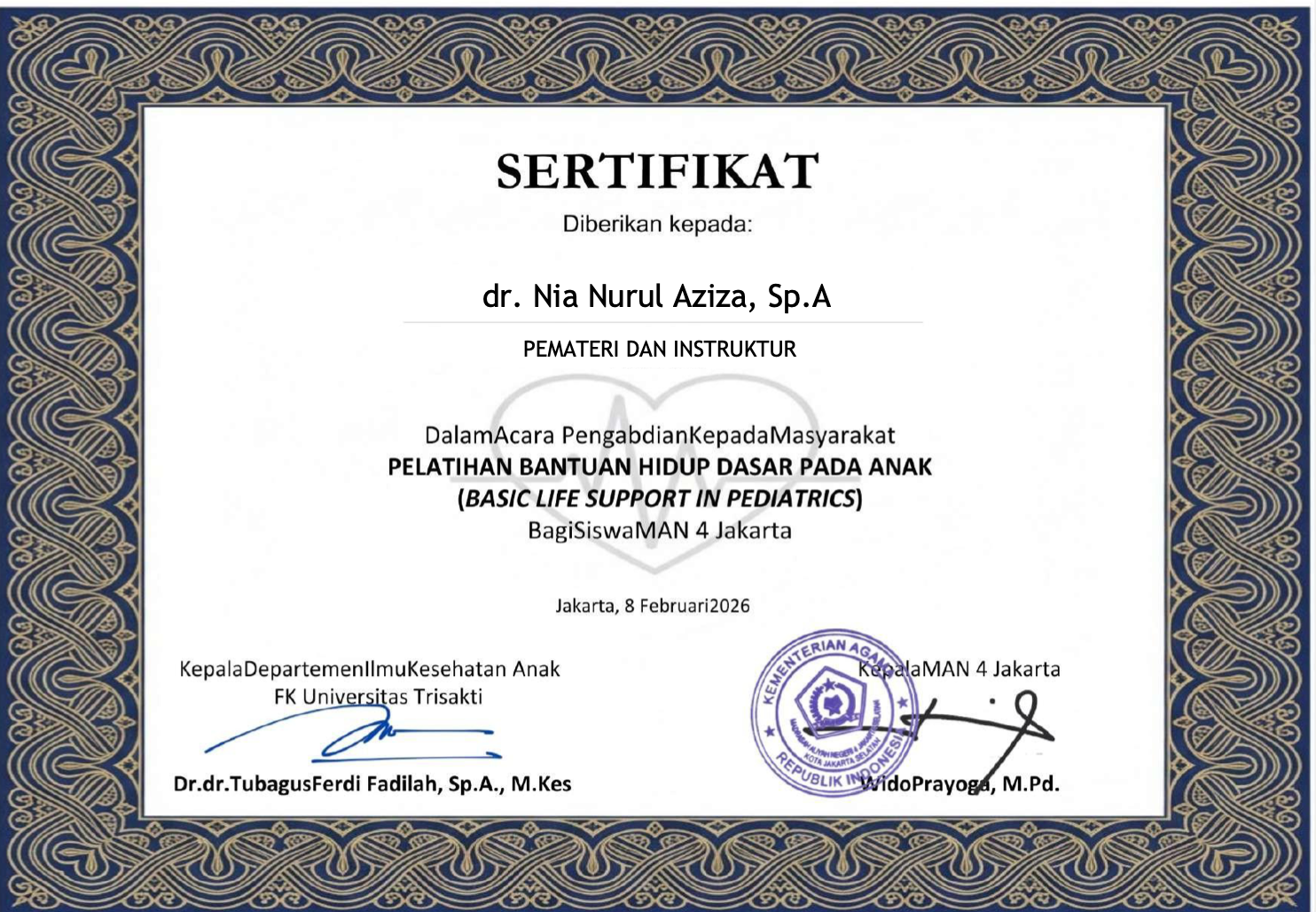 Sertifikat Instruktur BHD MAN 4 8 Februari 2026