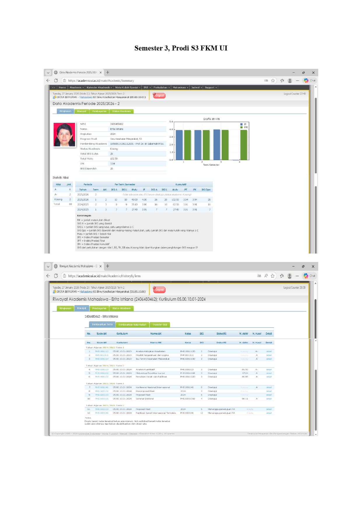 Hasil Studi Prodi S3 FKM UI Semester 3