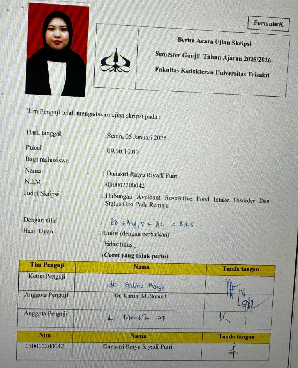Berita Acara Ujian Danastri