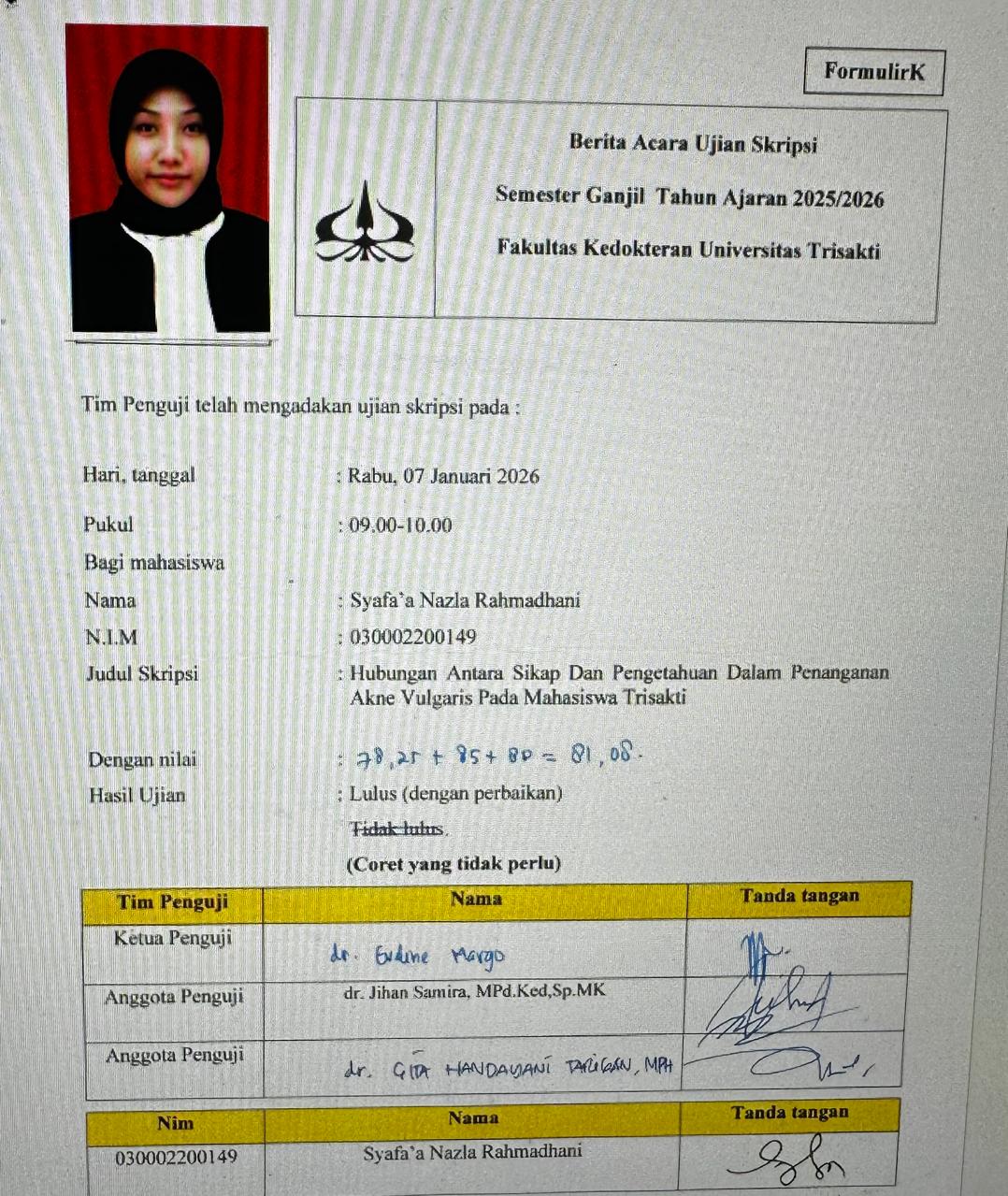 Berita Acara Ujian Syafa'a