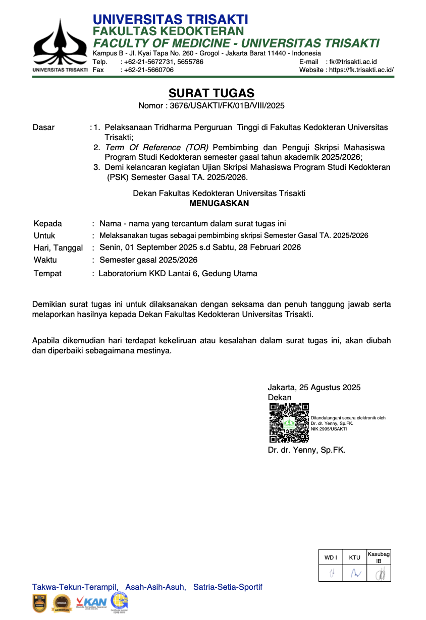 Surat Tugas Pembimbing Skripsi Semester Gasal 2025-2026