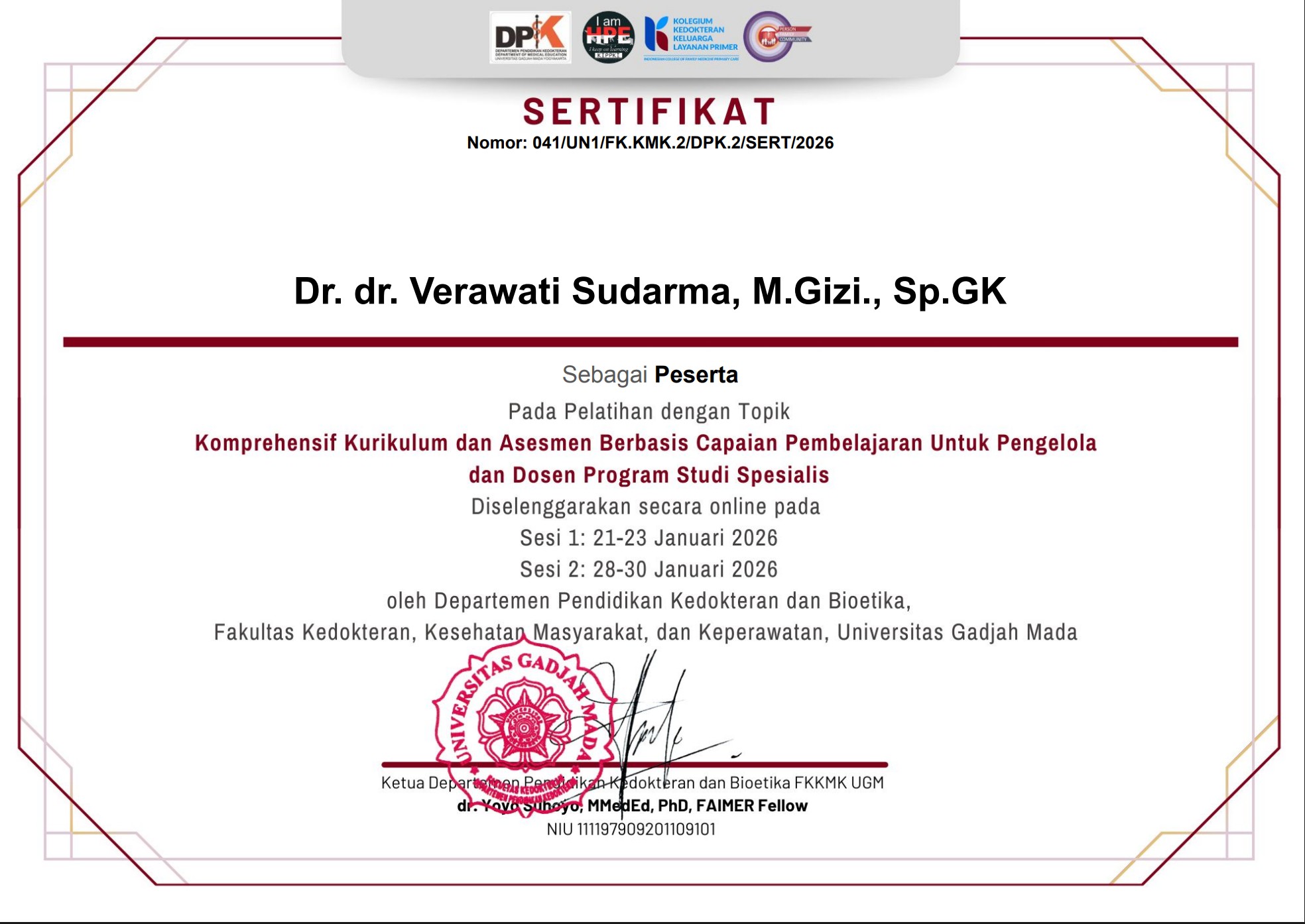Vera-pelatihan kurikulum 21 jam Jan 2026