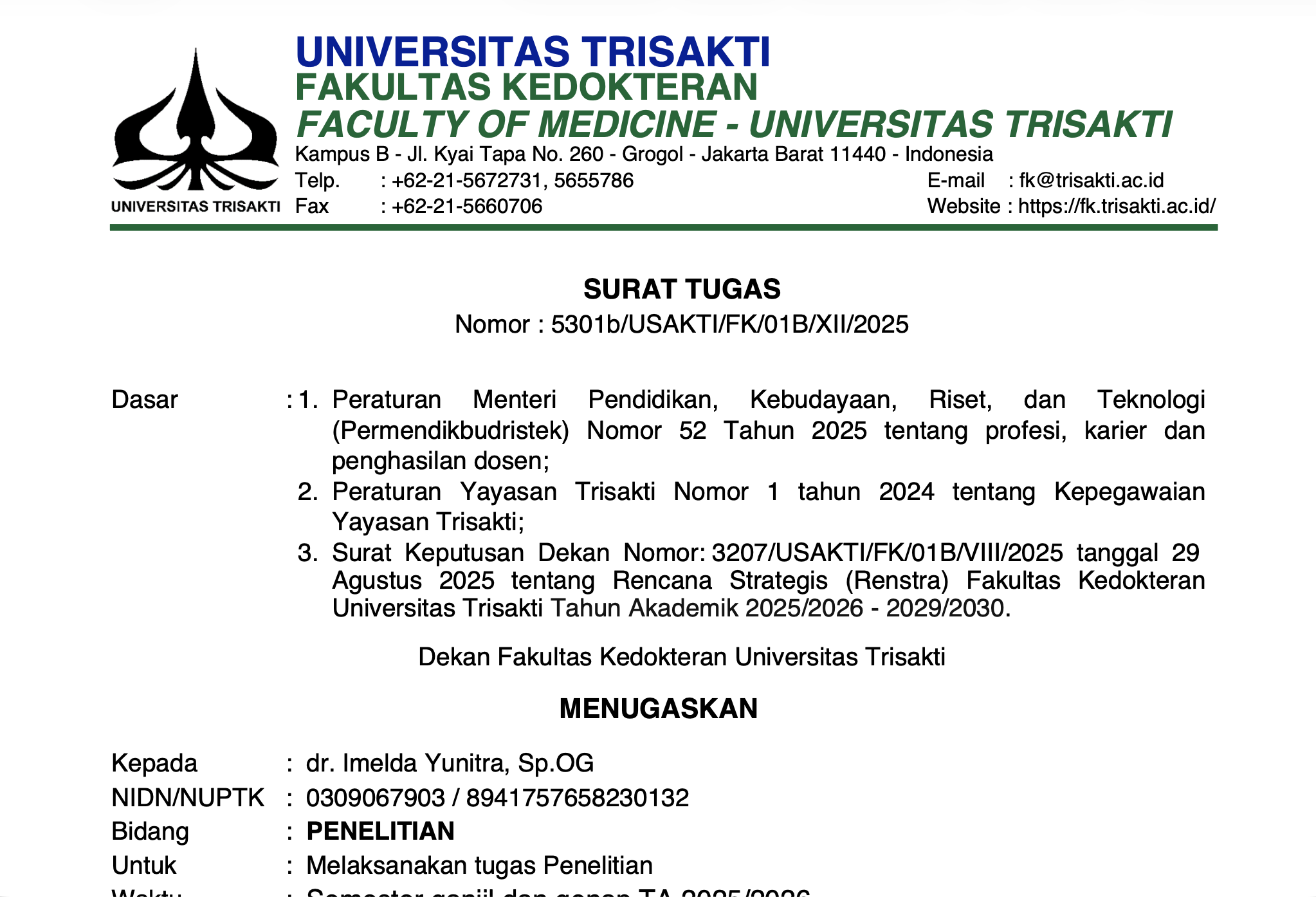 IMELDA YUNITRA - SURAT TUGAS BID B PENELITIAN SEM GANJIL 2025/2026