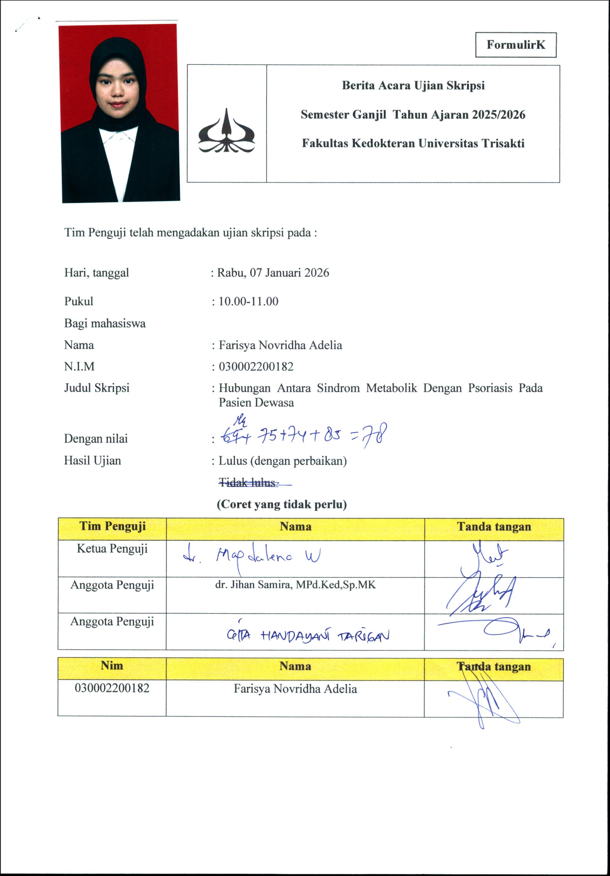 Berita acara skripsi Farisya