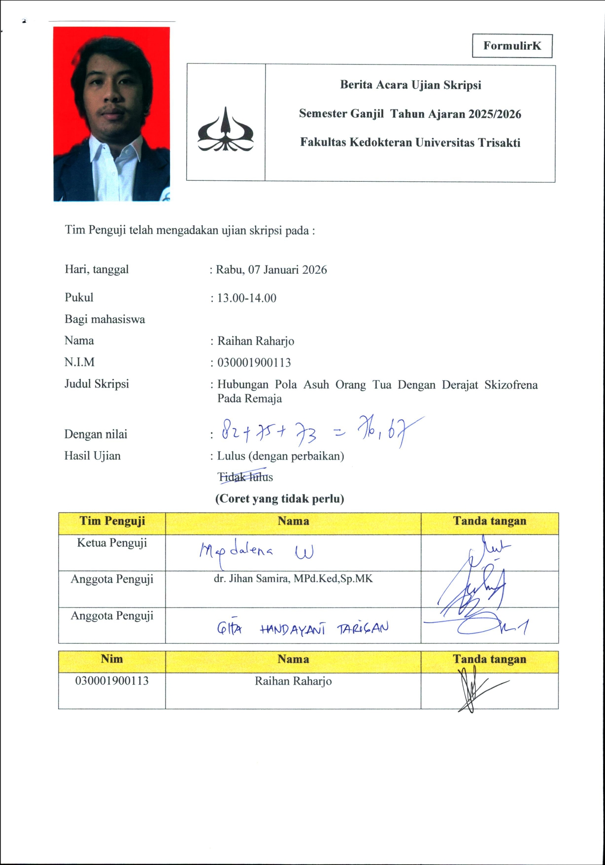 Berita acara skripsi Raihan