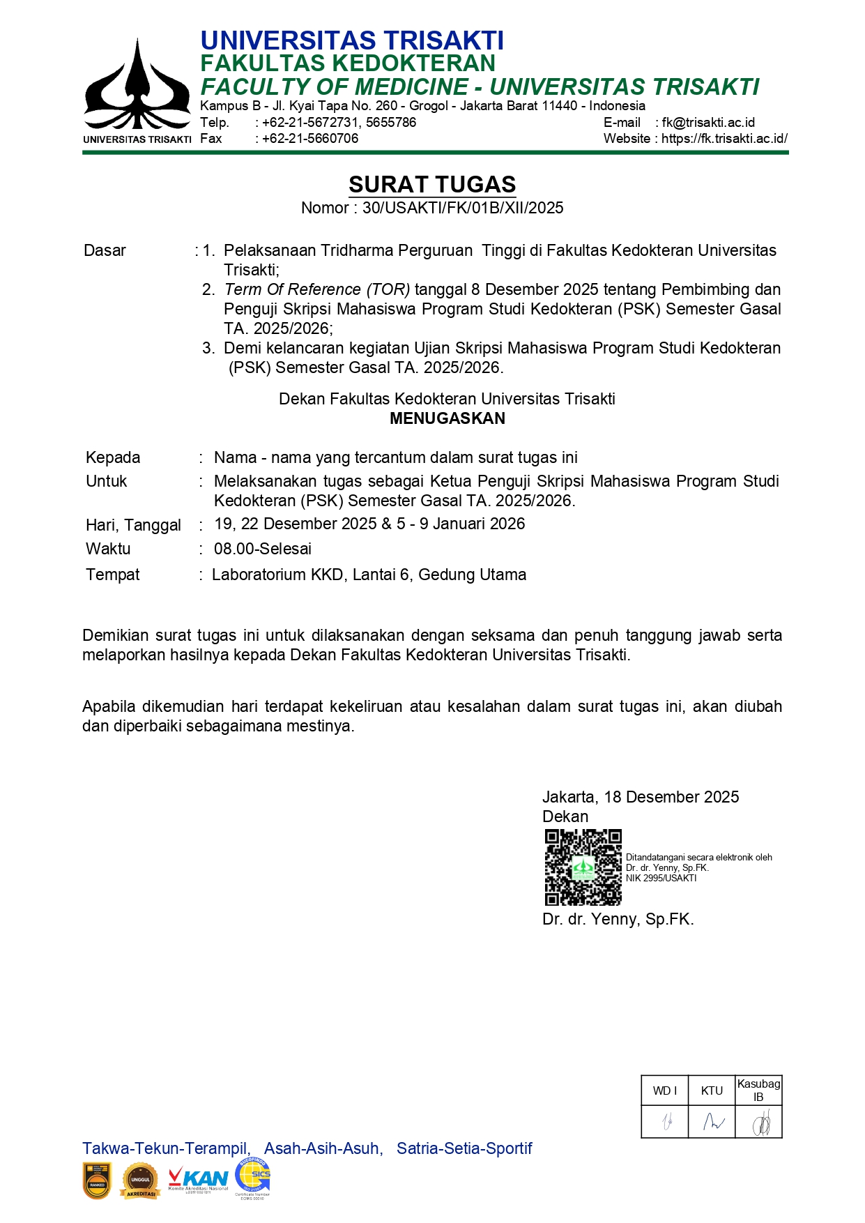 surat tugas Ketua Penguji