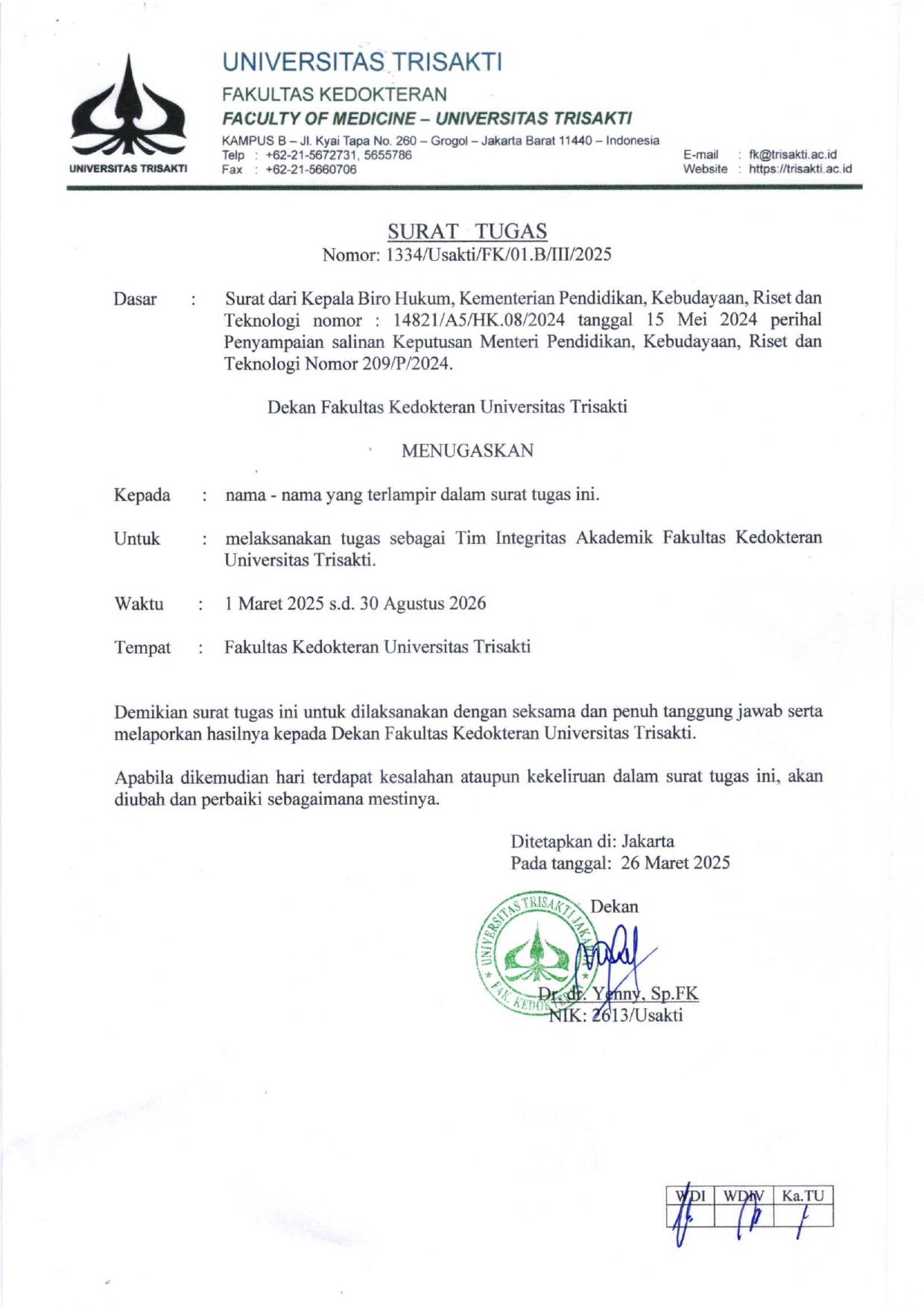 surat tugas tim integritas akademik