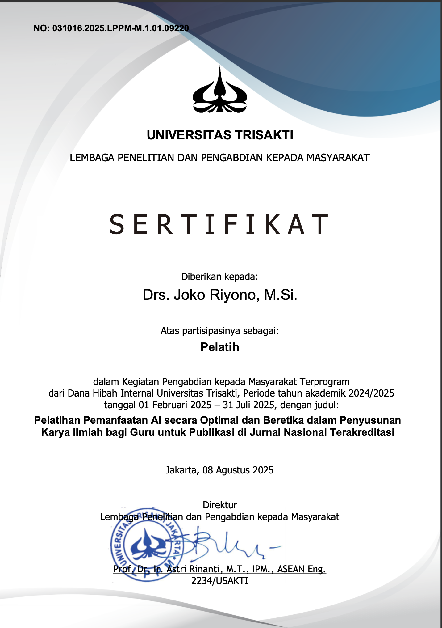 Repository Karya Ilmiah Universitas Trisakti