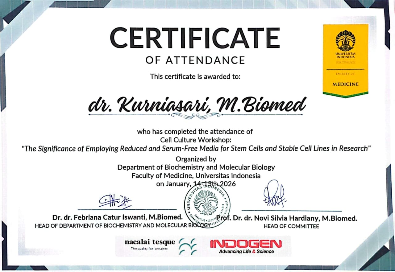Kurniasari_Sertifikat Workshop Kultur Sel