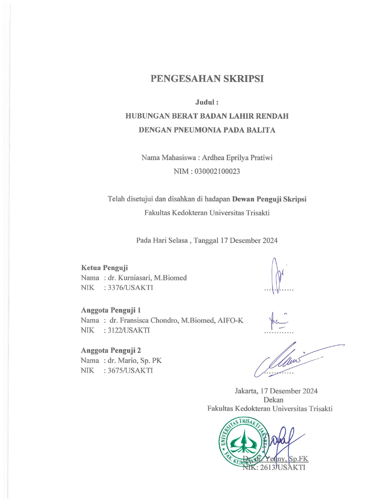 Lembar Pengesahan Ujian Skripsi Ardhea