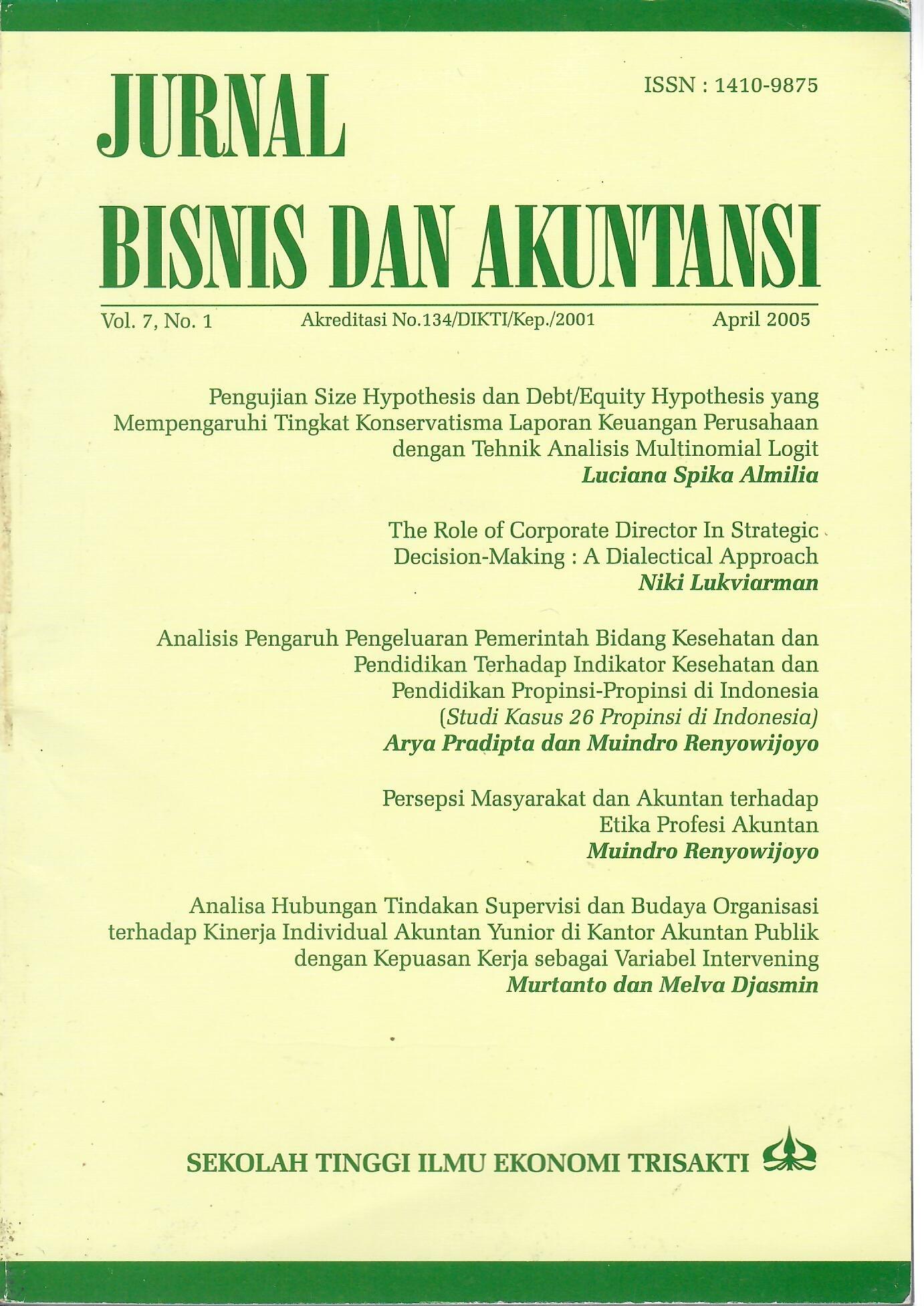 Jurnal Bisnis Dan Akuntansi 7 (1): 84-109. https://doi.org/10.34208/jba.v7i1.587. ISSN Cetak (ISSN 1410-9875) ISSN Online (E-ISSN 2656-9124)