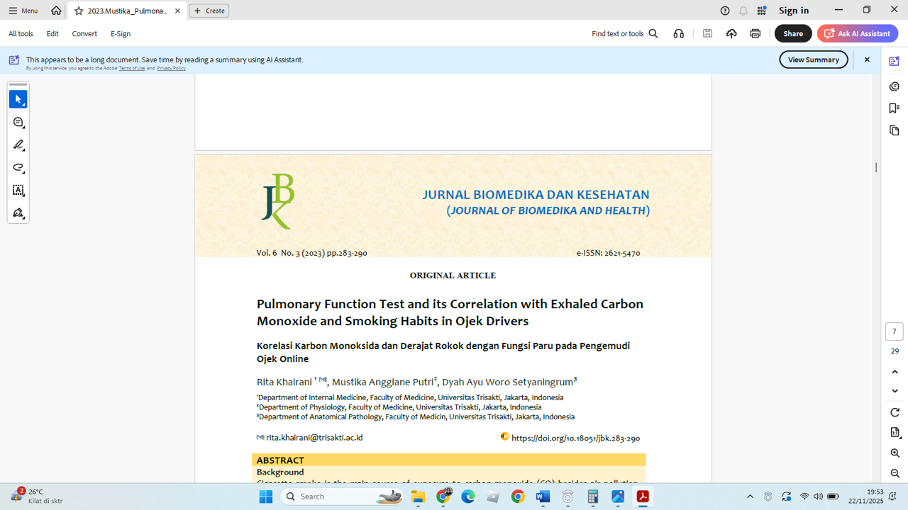 jurnal jurnal Pulmonary Function Test and its Correlation with Exhaled Carbon Monoxide and Smoking Habits in Ojek Drivers