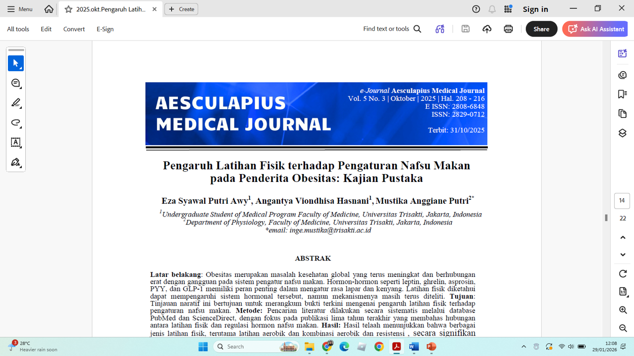 Publikasi Pengaruh Latihan Fisik terhadap Pengaturan Nafsu Makan pada Penderita Obesitas Kajian Pustaka