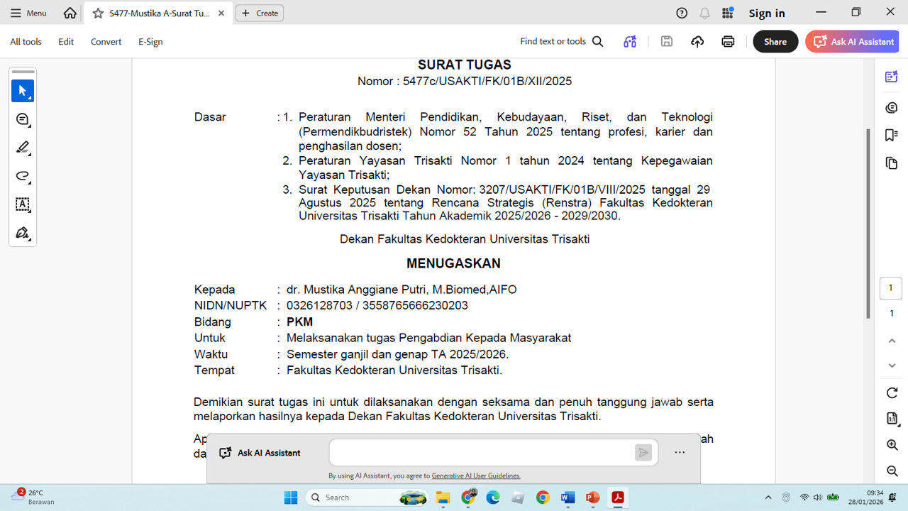 surat tugas BKD TA 2025/2026 ganjil genap bisang PKM