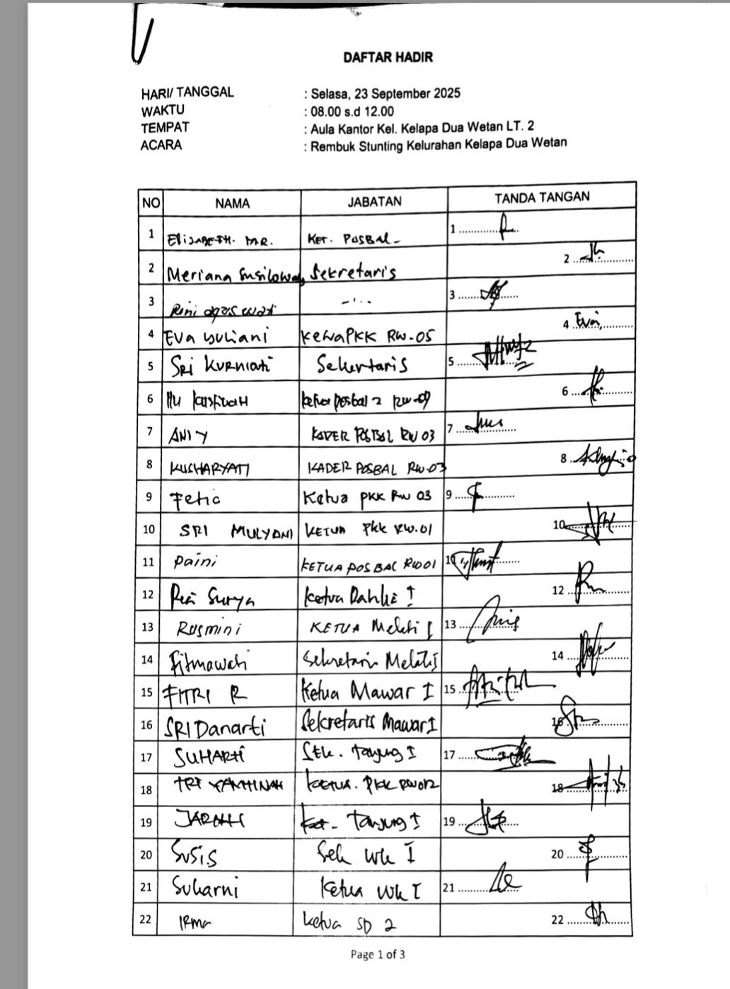 Daftar Hadir Seminar Stunting 23 September 2025
