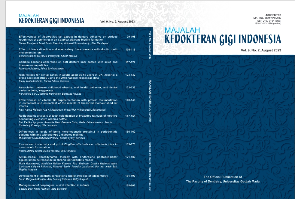 Zingiber officinale var. officinale juice has many benefits, including as a mixture of mouthwash. This research aims to analyze the differences in pH and viscosity values of Zingiber officinale var. officinale-containing mouthwashes with concentrations
