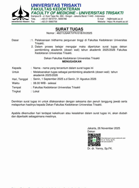 Surat Tugas Dosen Wali Gasal 2025/2026