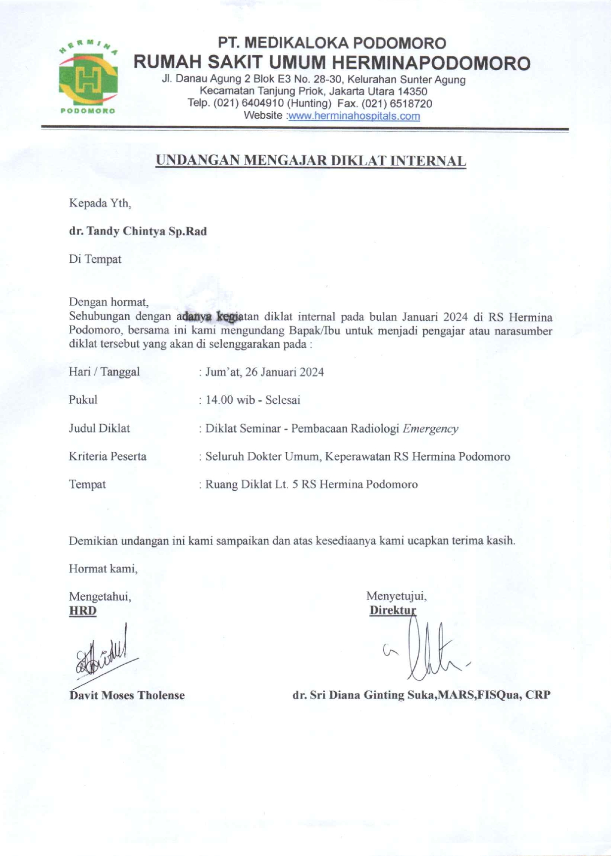 Tandy Chintya - Pembicara Diklat Seminar RS. Hermina Podomoro