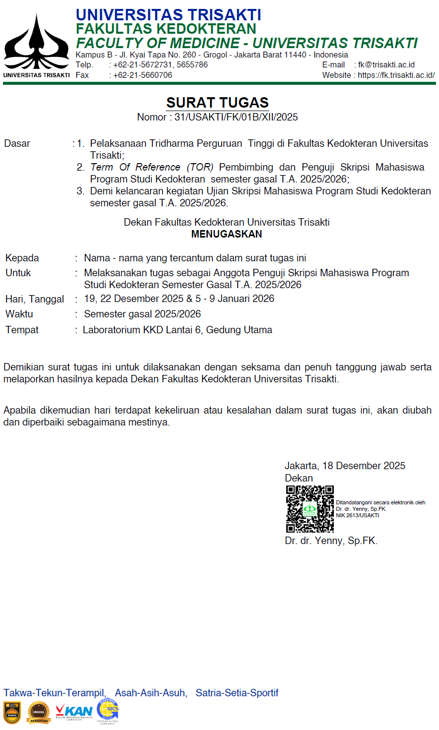 Surat tugas anggota penguji skripsi 2025