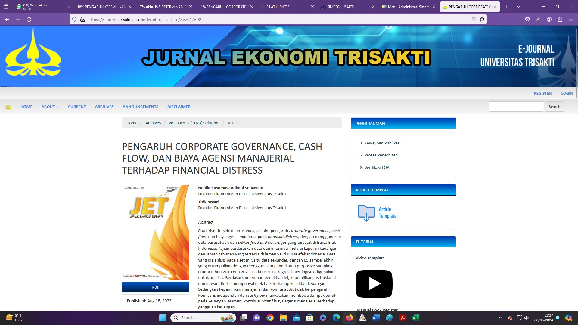 PENGARUH CORPORATE GOVERNANCE, CASH FLOW, DAN BIAYA AGENSI MANAJERIAL TERHADAP FINANCIAL DISTRESS
