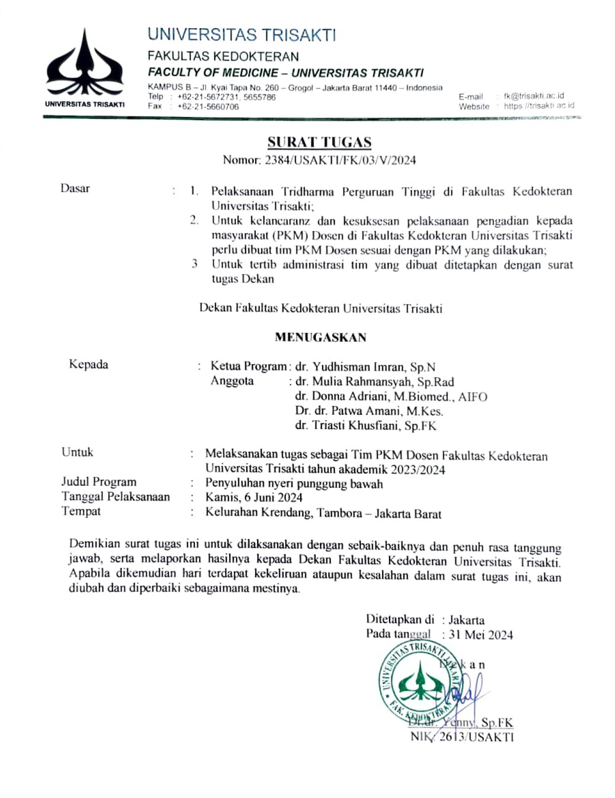 Surat Tugas Penyuluhan Nyeri Punggung Bawah Juni 2024