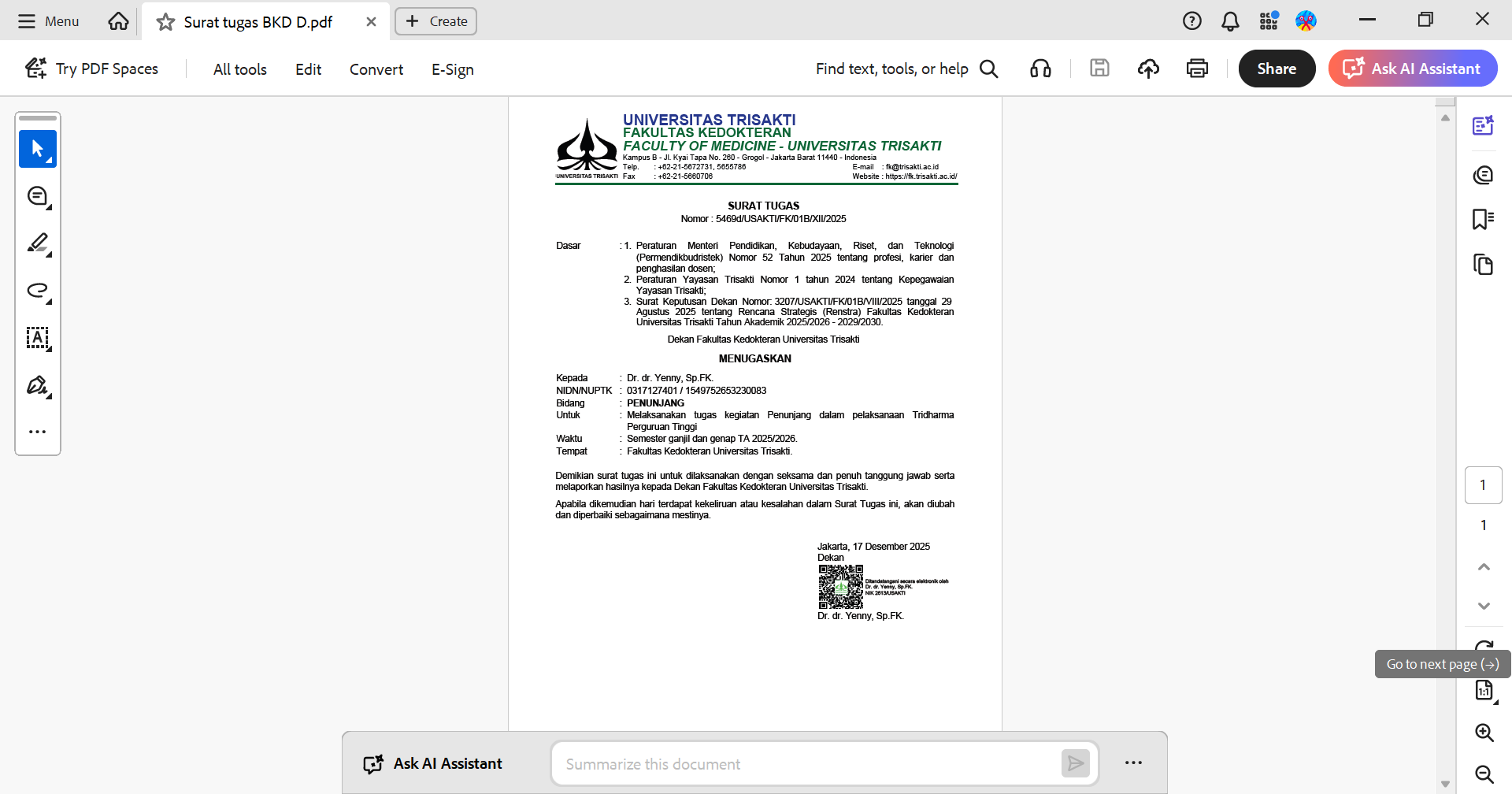 Surat tugas BKD TA 2025/2026 bidang D