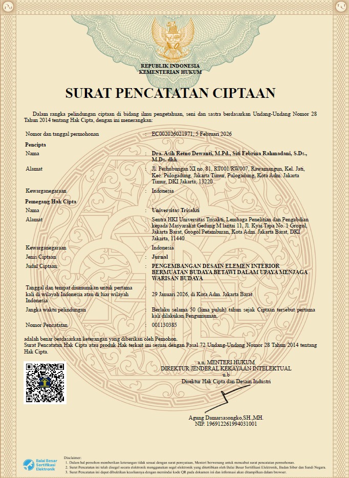 PENGEMBANGAN DESAIN ELEMEN INTERIORBERMUATAN BUDAYA BETAWI DALAM UPAYA MENJAGAWARISAN BUDAYA