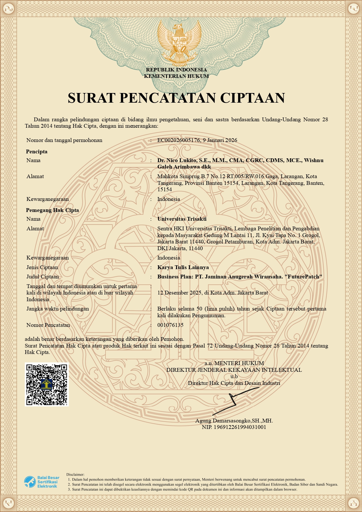 EC002026005176, 9 Januari 2026 Dr. Nico Lukito, S.E., M.M., CMA,CGRC, CDMS, MCE. Wishnu Galeh Arimbawa Jason Sugita Abdi Saefani Ibrahim