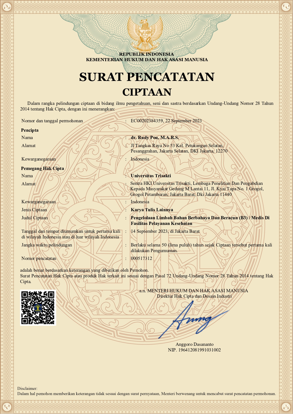 Sertifikat HKI_Pengelolaan Limbah Medis di Fasyankes