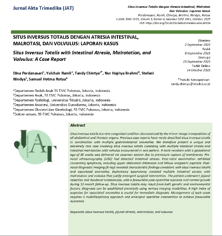 JURNAL SITUS INVERSUS TOTALIS DENGAN ATRESIA INTESTINAL, MALROTASI, DAN VOLVULUS: LAPORAN KASUS