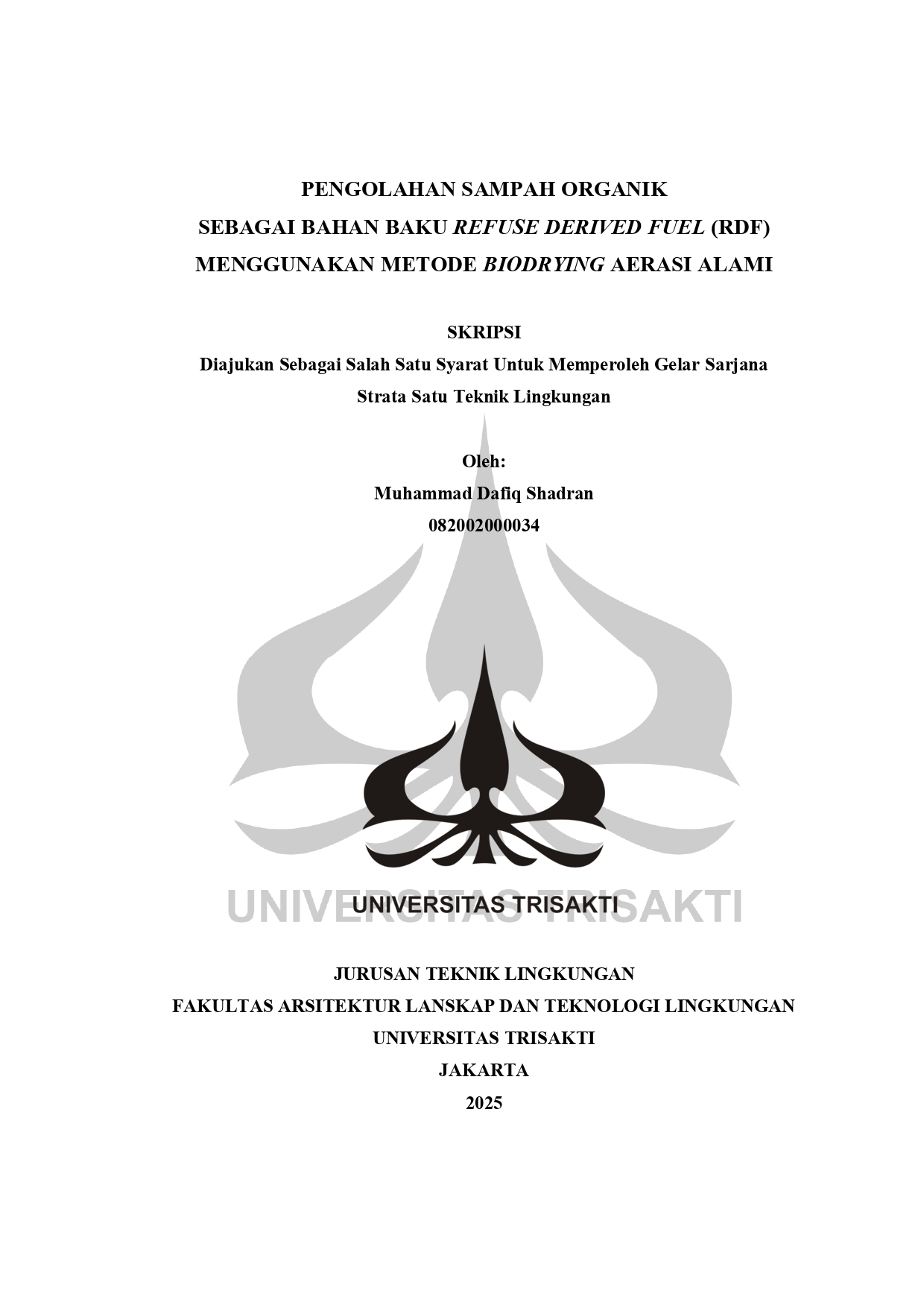 COVER LAPORAN SKRIPSI PERENCANAAN PENGELOLAAN SAMPAH DI KECAMATAN CENGKARENG, JAKARTA BARAT (DAFIQ SHADRAN)