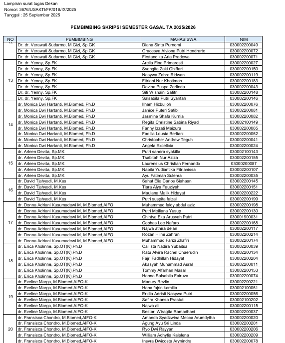 Surat tugas pembimbing skripsi Ganjil 2025/2026