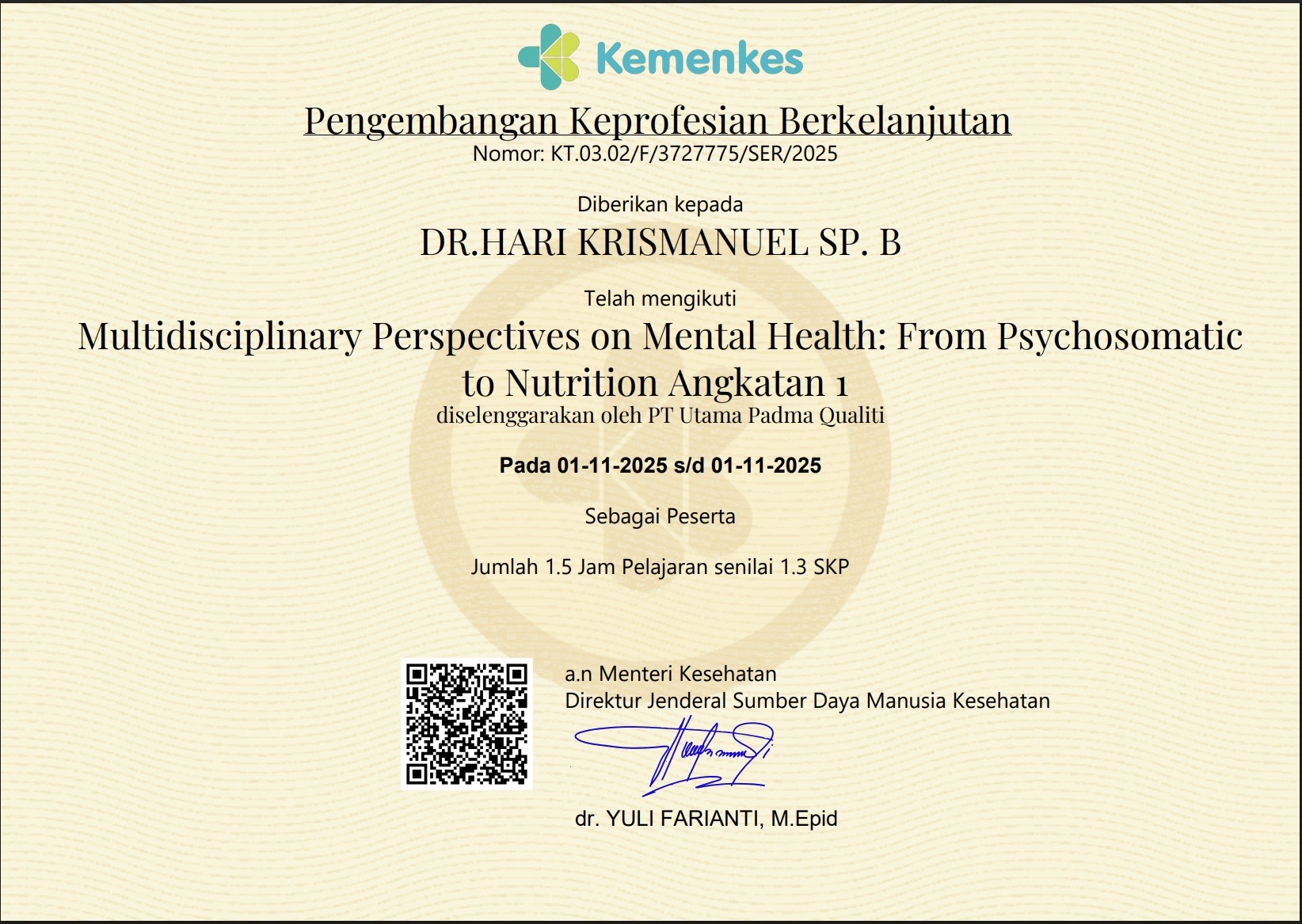 Dr Hari Krismanuel, Sp. B_Multidisciplinary Perspectives on Mental Health: From Psychosomatic to Nutrition Angkatan 1