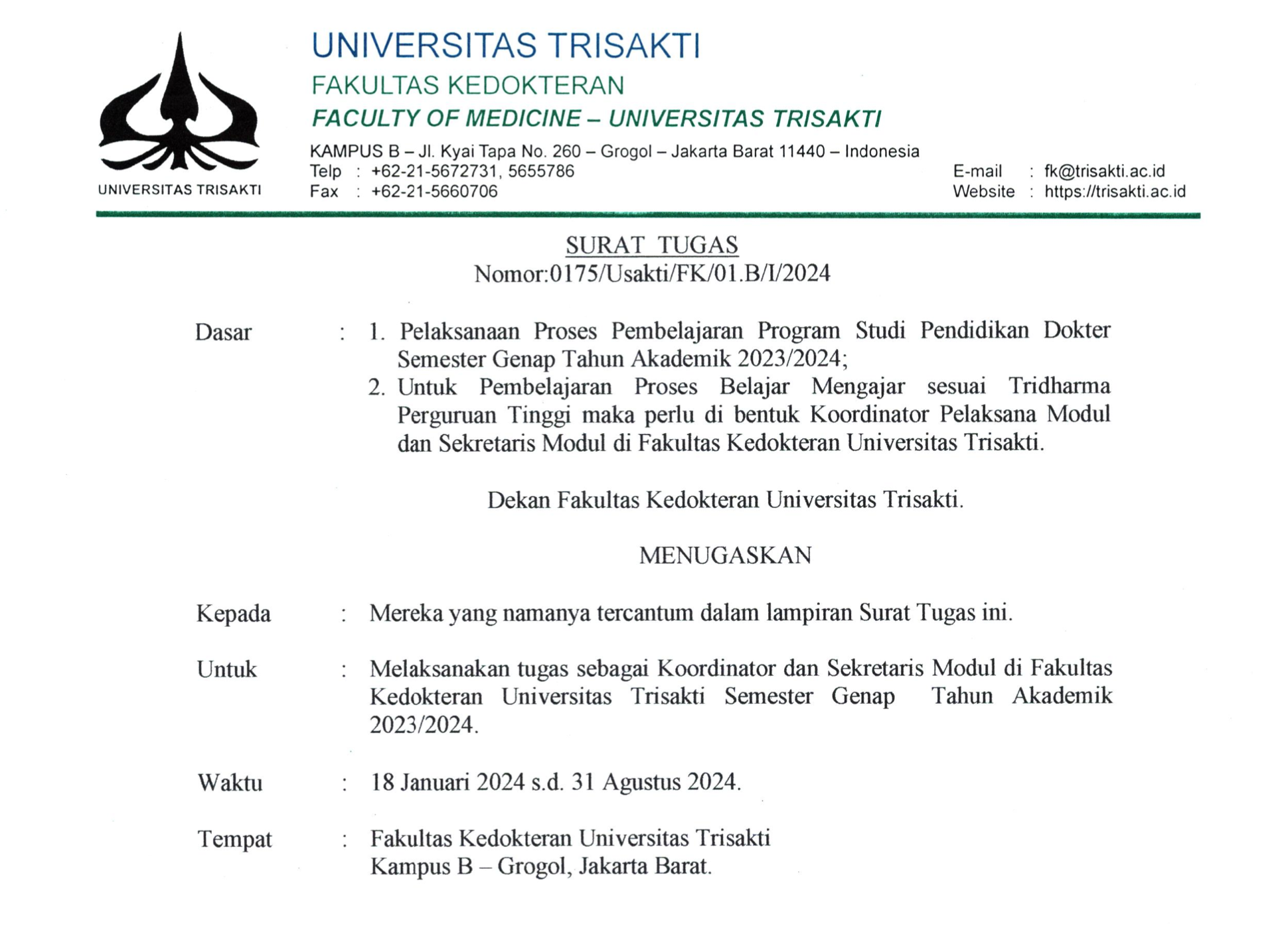 Surat tugas sebagai SM Repro semester genap 2023/2024