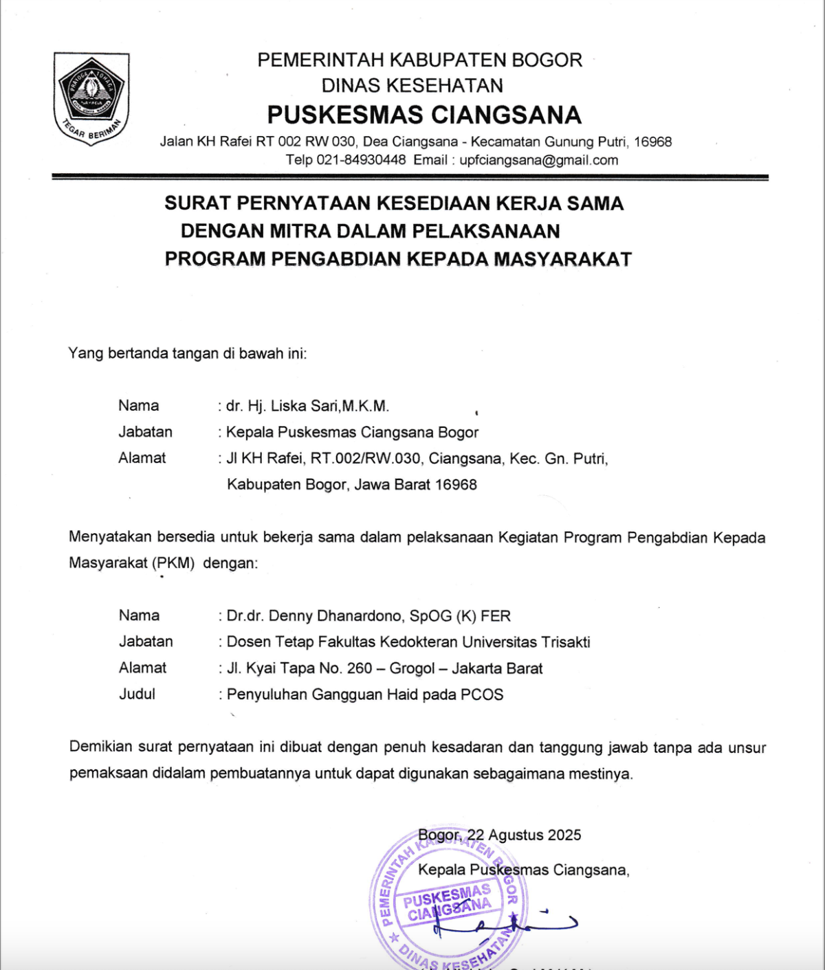 Surat Mitra PKM Nagrak dr. Denny