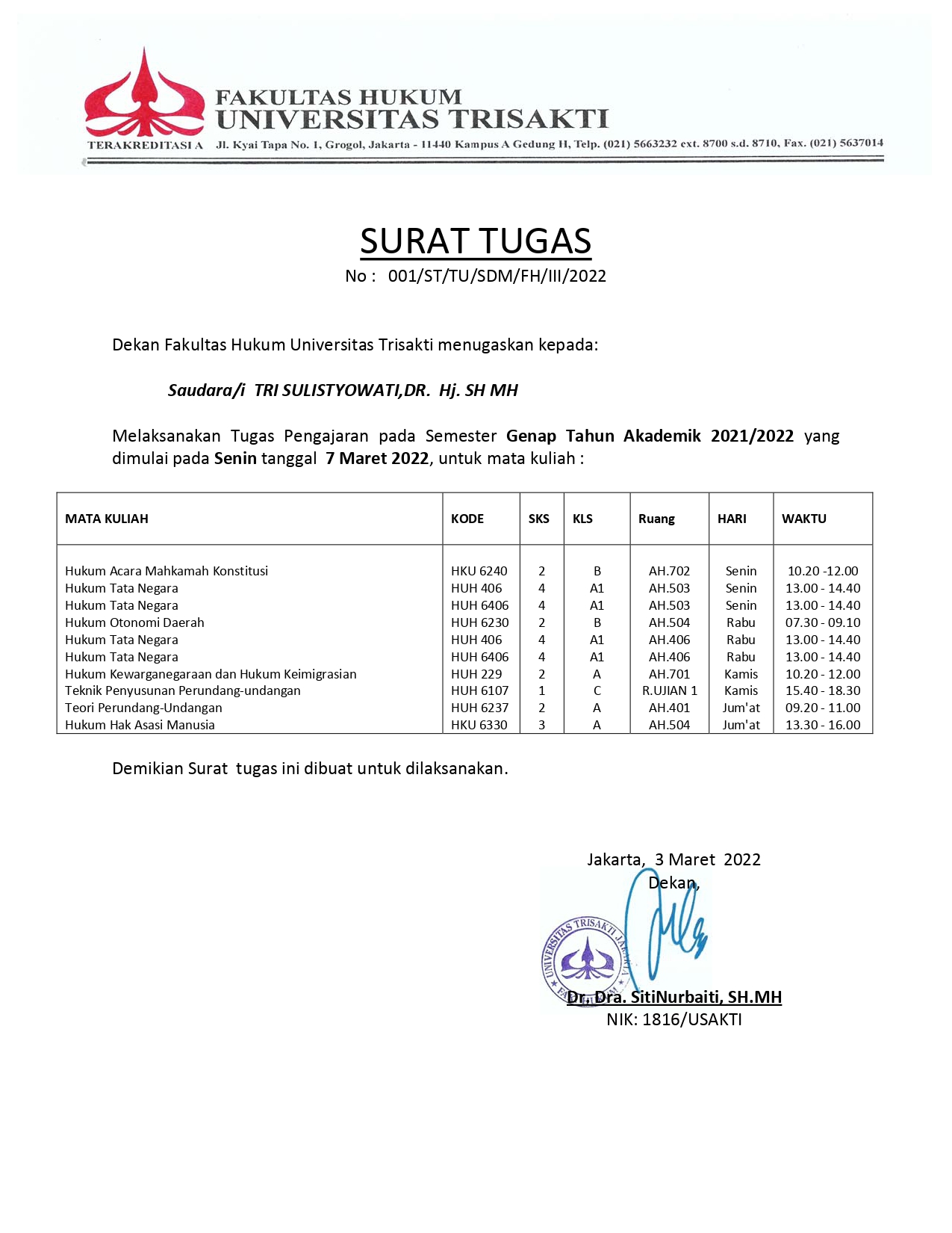 SURAT TUGAS MENGAJAR 2022 TRI SULISTYOWATI