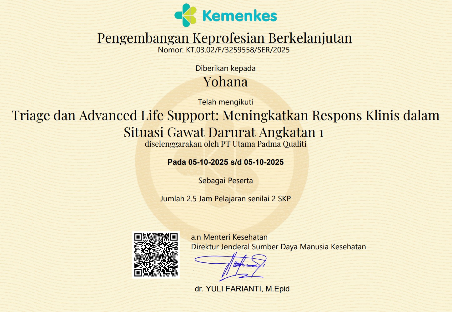 sertifikat webinar triage and advanced life support