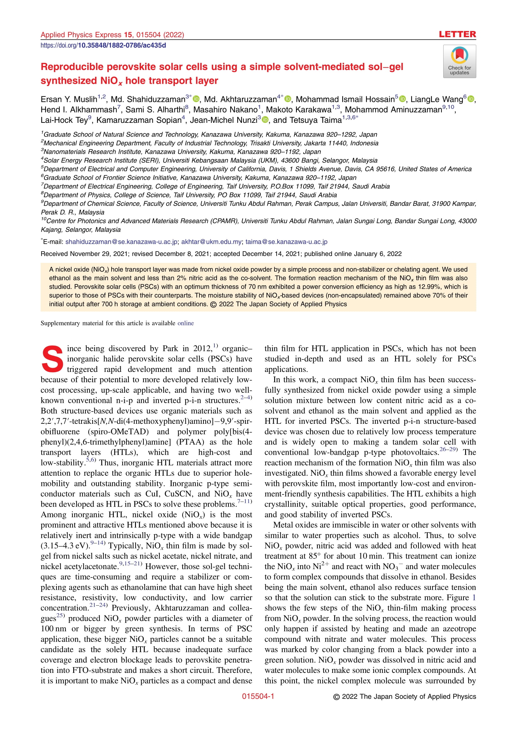 Reproducible perovskite solar cells using a simple solvent