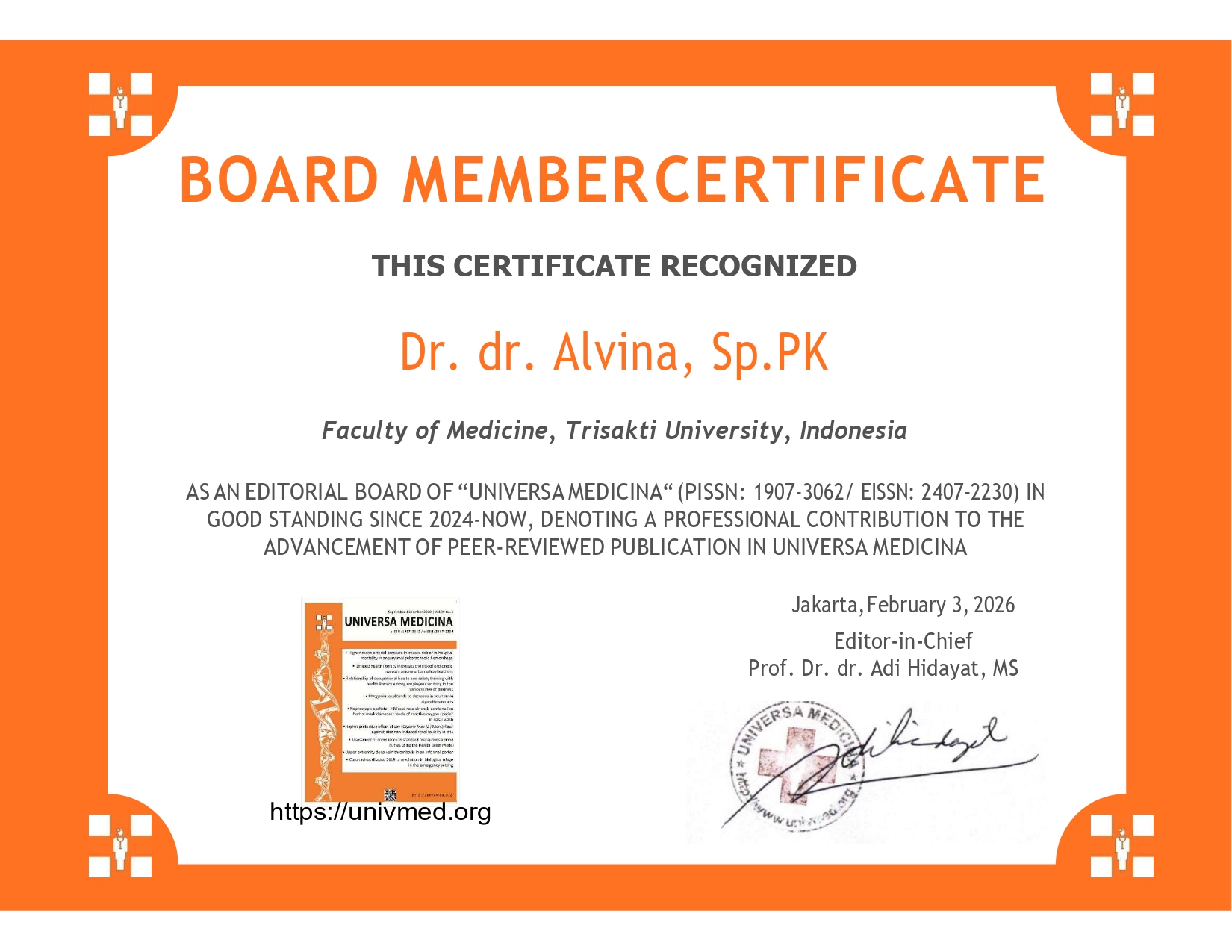 Alvina-Sertifikat editor Universa Medicina ...