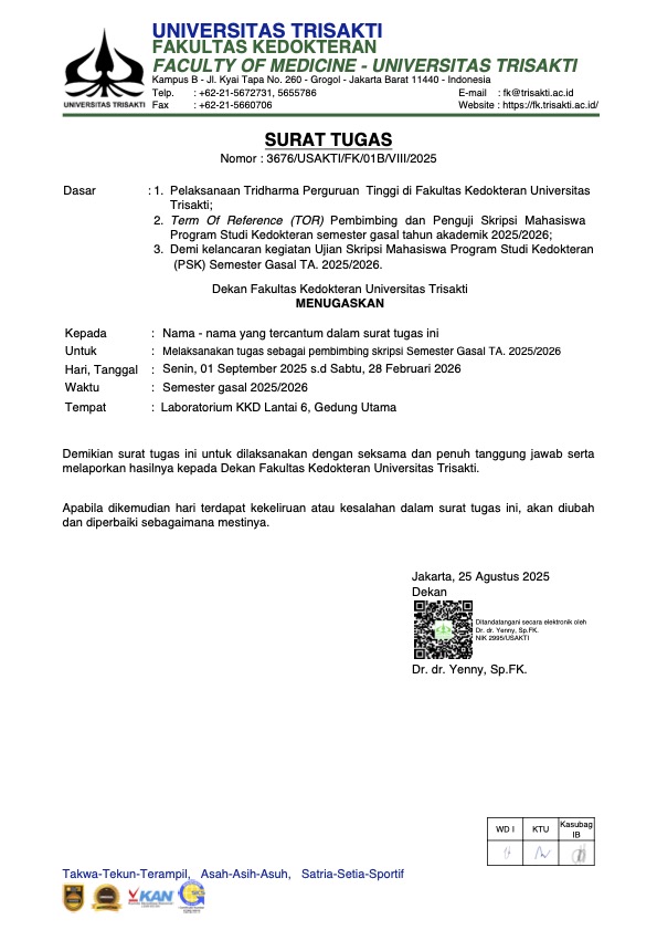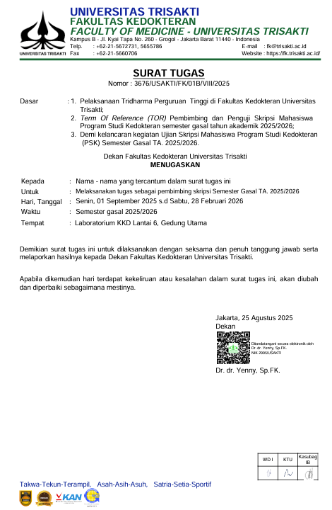Surat Tugas Dekan Nomor : 3676/USAKTI/FK/01B/VIII/2025 tertanggal 25 Agustus 2025 ...