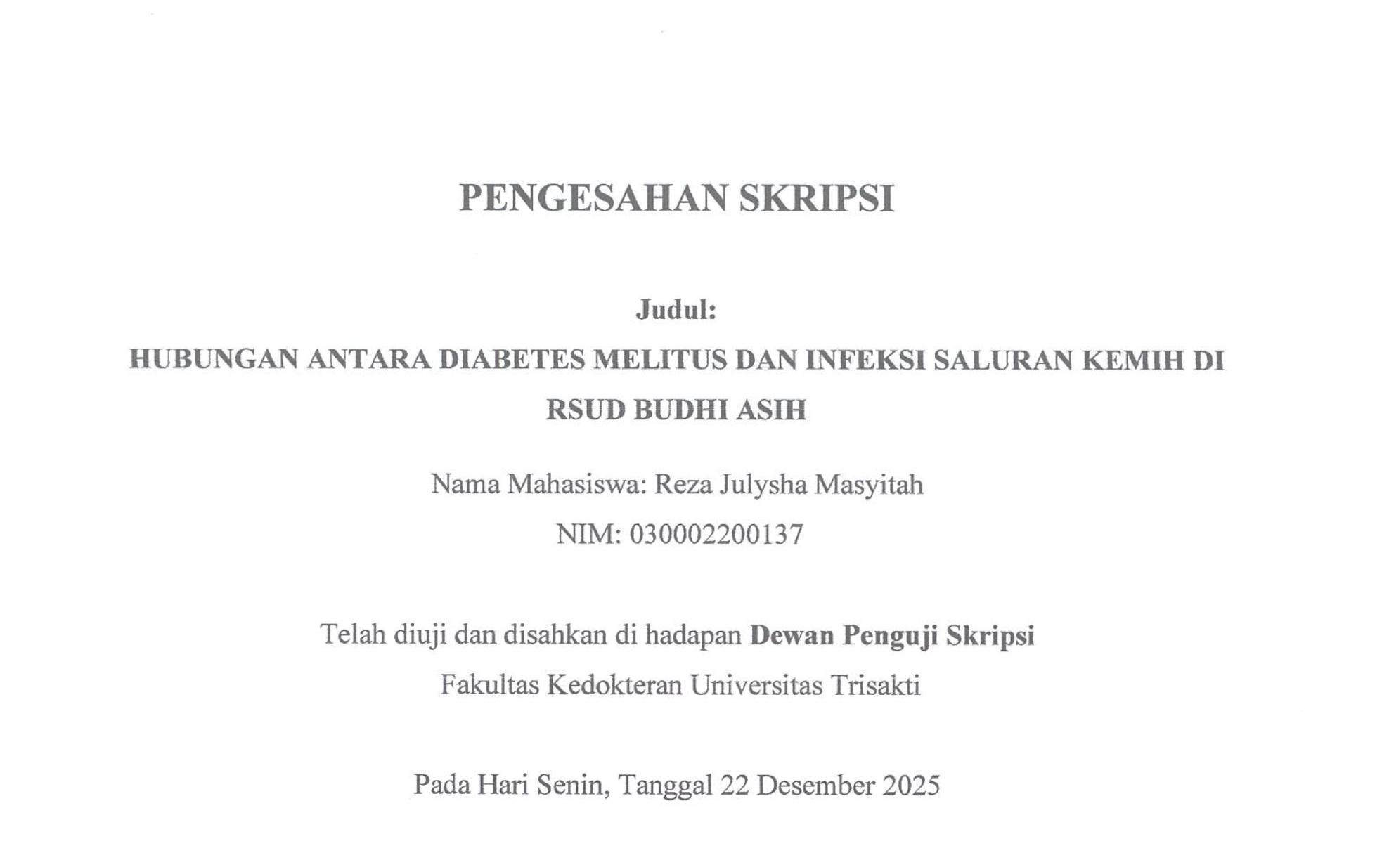 Surat Tugas Dekan Bidang Pendidikan Nomor : 5212d/USAKTI/FK/01B/IX/2025 tertanggal 17 Desember 2025 ...