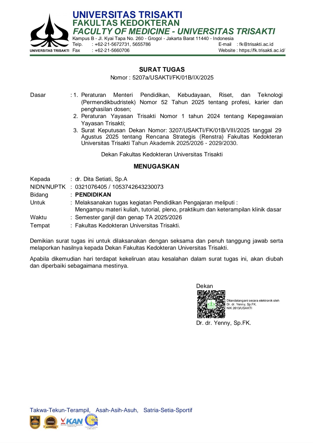 Dr. Hari Krismanuel, Sp. B_Surat Tugas Bidang Penunjang Semester Ganjil 2025-2026 ...