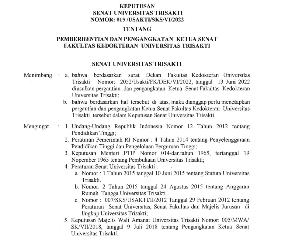 SK Ketua senat FK Trisakti ...