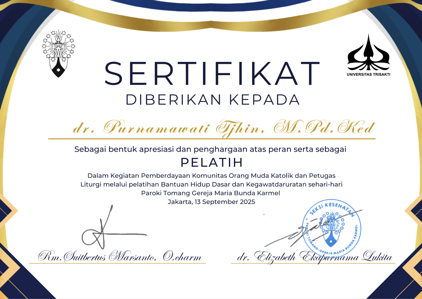 Kegiatan Pemberdayaan Komunitas Orang Muda Katolik dan Petugas Liturgi melalui pelatihan Bantuan Hidup Dasar dan Kegawatdaruratan sehari-hari Paroki T ...