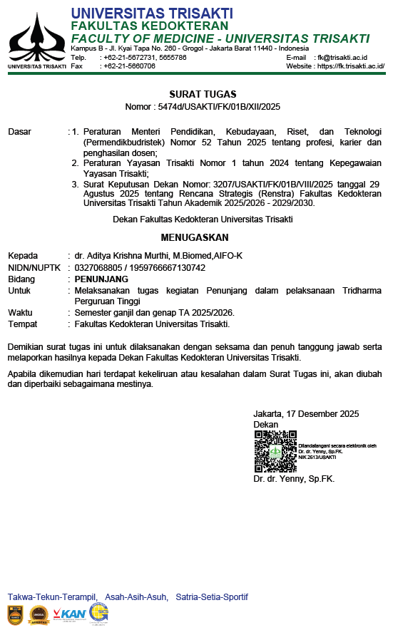Surat tugas dari Dekan FK USAKTI untuk pelaksanaan kegiatan penunjang pada Semester Gasal dan Genap TA 2025/2026